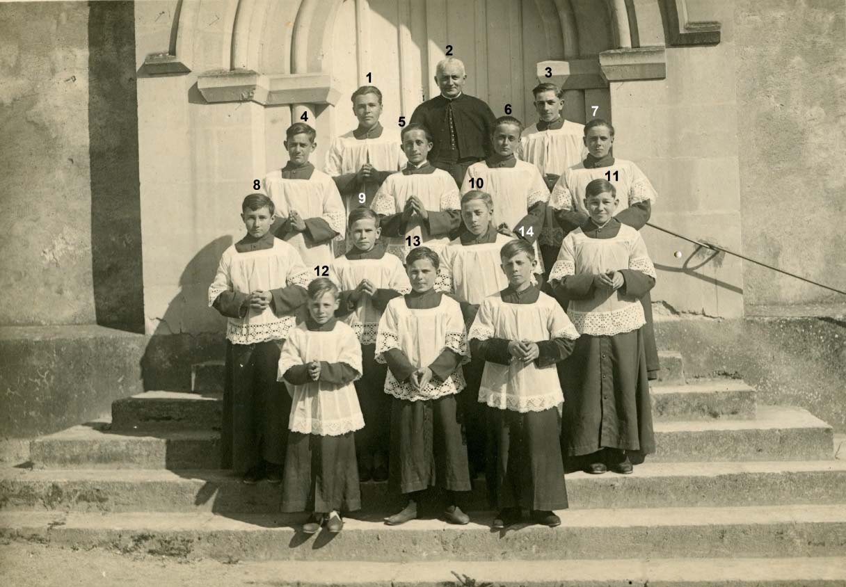 N'ayant pas trouvé de photo de groupe des enfants de choeur de Louresse, je mets une photo des enfants de choeur d'Ambillou-Château vers 1950.
