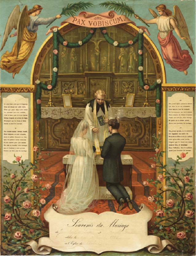 Diplôme de mariage vers 1902. Le poème est agrandi sur la page suivante.