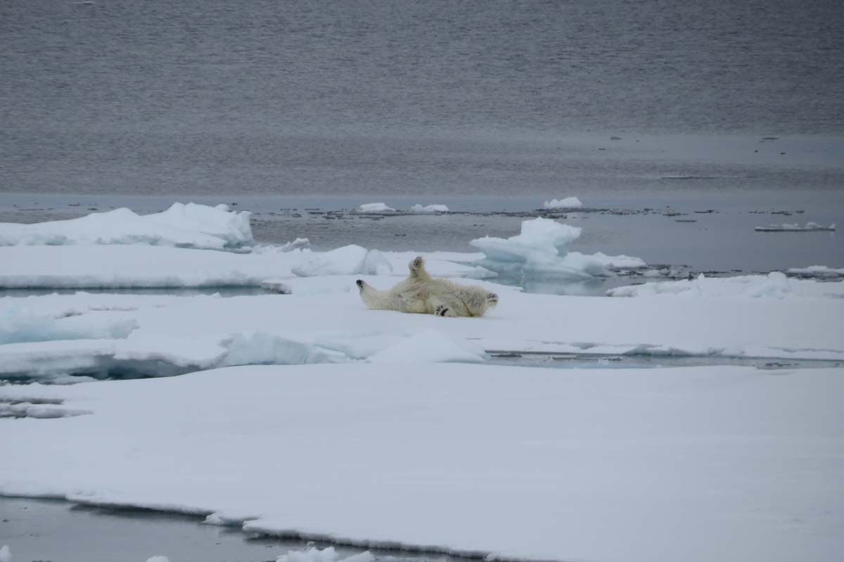 La femelle se gratte le dos sur un glaçon avant de continuer son chemin.