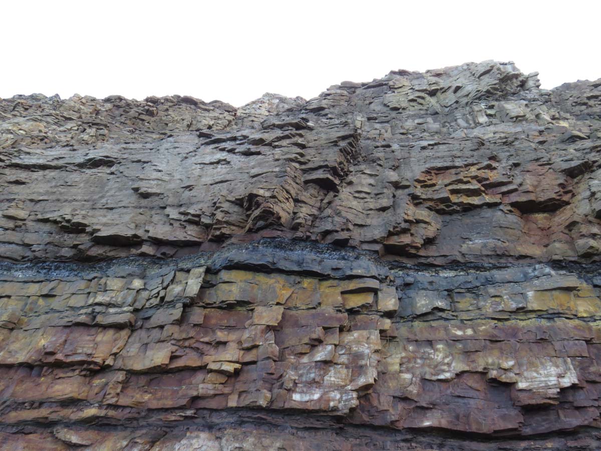 Une couche de charbon dans la falaise.
