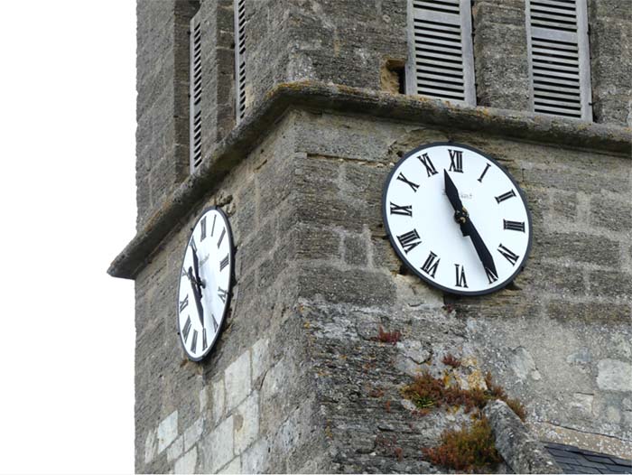 Les cadrans d'origine étaient usés. Les nouveaux cadrans sont un peu plus petits que ceux d'origine, dont on voit la marque sur la pierre de grison.