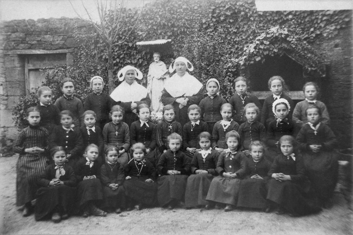 Vers 1890 à Louresse. Les enseignantes de l'école privée des filles étaient des soeurs de la congégation de Saint-Charles d'Angers. Cette congrégation a été fondée en 1714. Elle est placée sous le patronage de Saint Charles Borromée, un cardinal italien du XVIe siècle. Les soeurs de Saint Charles sont spécialisées dans l'enseignement dans les petites villes et les campagnes.
